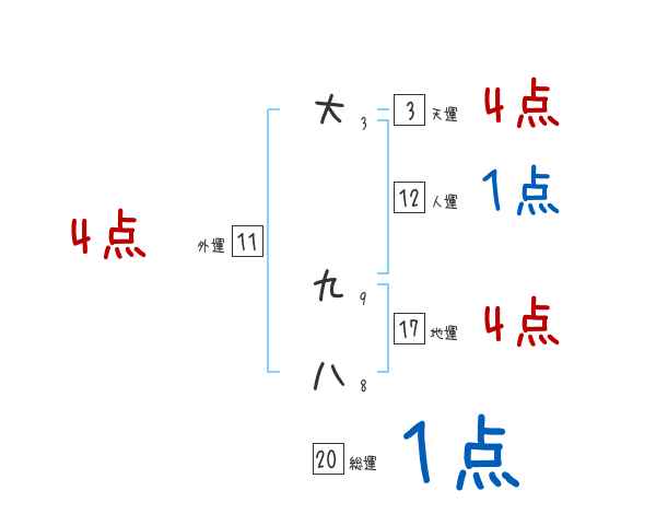 天運![]() | 大九八さんの天運は3画の4つ星!活動的で才能に恵まれ、多くの信頼を得る。希望に満ち成長する。 家系が持つ宿命的な運勢を表します。祖先から受け継いだ苗字ですので自分の力が及びません。家柄を象徴します。 |