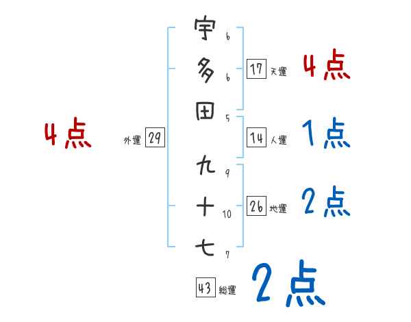 宇多田九十七さんの画数の鑑定結果