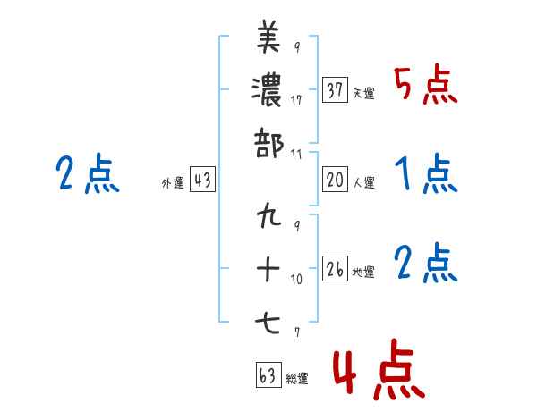 総運![]() | 美濃部九十七さんの総運は63画の4つ星!家庭運がよく順調な生活。温和な性格。 あなたの人生を表す1番重要な運勢です。生涯を通じて影響する総合運となり、主に50歳以降の晩年期に影響を及ぼします。 |