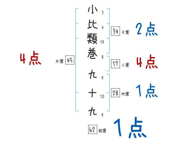 天運![]() | 小比類巻九十九さんの天運は34画の2つ星!独創性に優れるが、自尊心が強く災難に注意しましょう。 家系が持つ宿命的な運勢を表します。祖先から受け継いだ苗字ですので自分の力が及びません。家柄を象徴します。 |