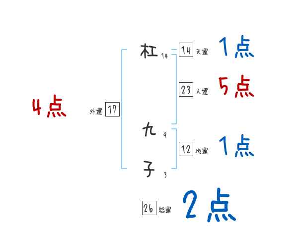 天運![]() | 杠九子さんの天運は14画の1つ星!人に対して優しいがストレスを溜め込みがち。人間関係のトラブルを避けるよう気をつけましょう。 家系が持つ宿命的な運勢を表します。祖先から受け継いだ苗字ですので自分の力が及びません。家柄を象徴します。 |