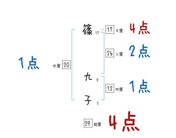 篠九子さんの画数の鑑定結果