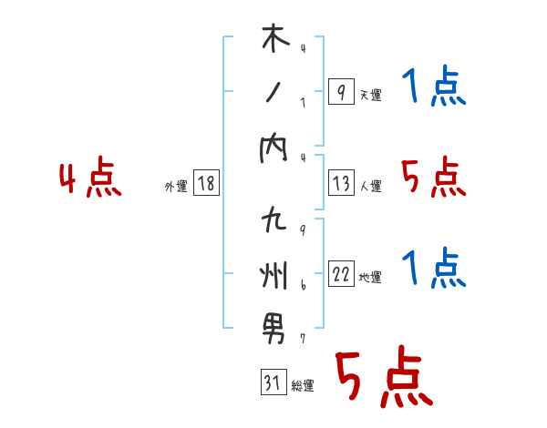 木ノ内九州男さんの画数の鑑定結果