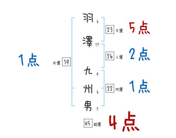 羽澤九州男さんの画数の鑑定結果