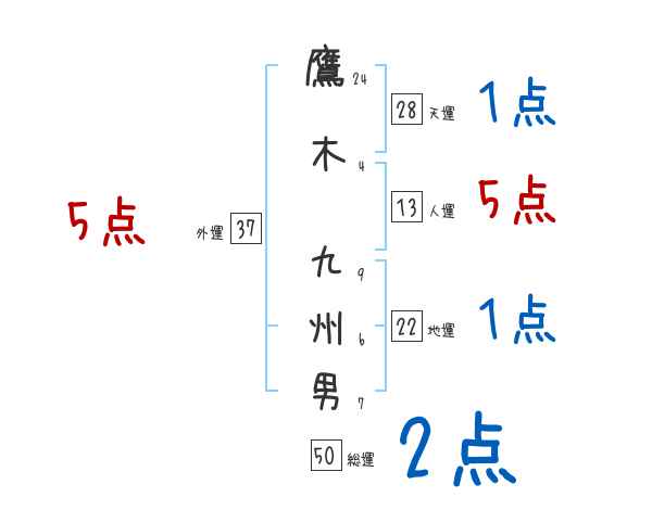 鷹木九州男さんの画数の鑑定結果