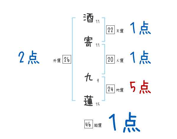 酒寄九蓮さんの画数の鑑定結果