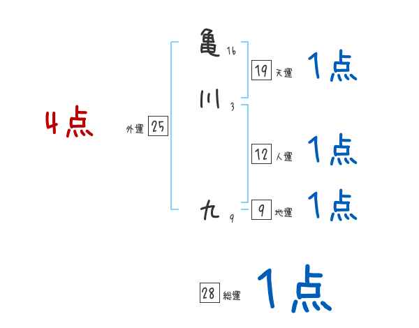 亀川九さんの画数の鑑定結果
