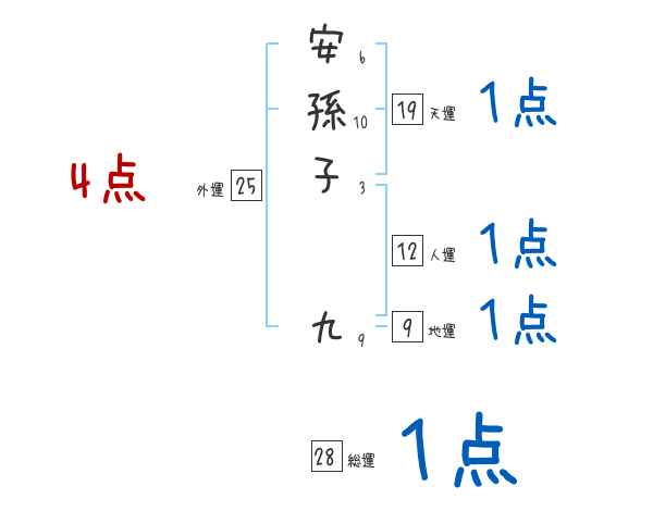 安孫子九さんの画数の鑑定結果