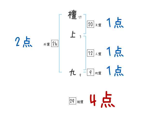 総運![]() | 檀上九さんの総運は29画の4つ星!完全主義で才能がある。厳格な心の持ち主。 あなたの人生を表す1番重要な運勢です。生涯を通じて影響する総合運となり、主に50歳以降の晩年期に影響を及ぼします。 |
