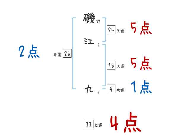 磯江九さんの画数の鑑定結果
