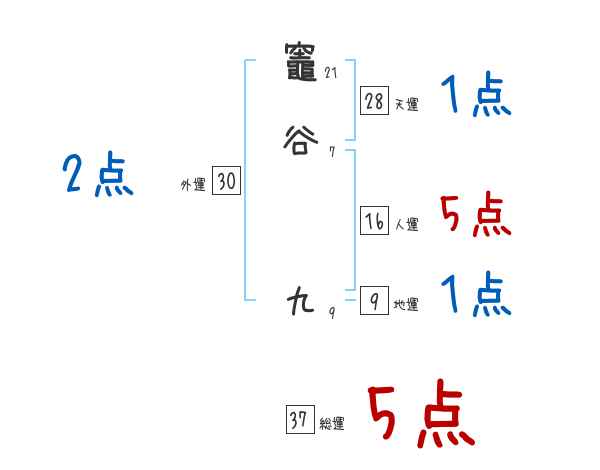 竈谷九さんの画数の鑑定結果