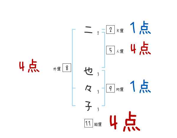 二也々子さんの画数の鑑定結果