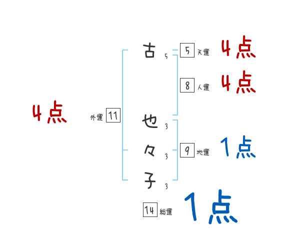 古也々子さんの画数の鑑定結果