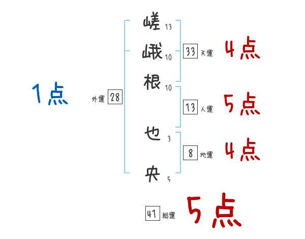 嵯峨根也央さんの画数の鑑定結果