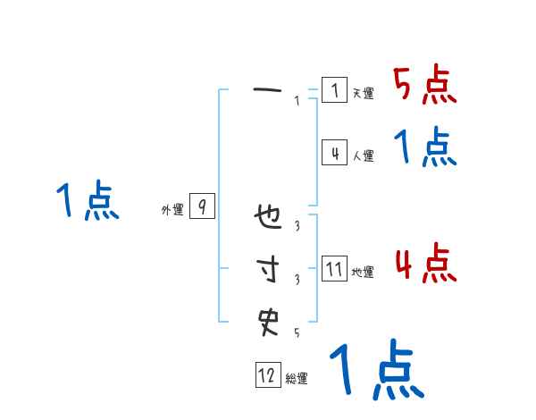 天運![]() | 一也寸史さんの天運は1画の5つ星!行動力、指導力があり出世し繁栄する。幸運に恵まれる。 家系が持つ宿命的な運勢を表します。祖先から受け継いだ苗字ですので自分の力が及びません。家柄を象徴します。 |