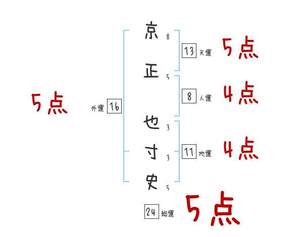 京正也寸史さんの画数の鑑定結果