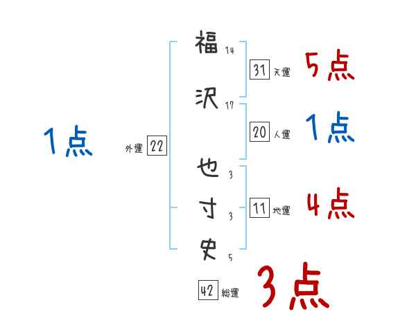 総運![]() | 福沢也寸史さんの総運は42画の3つ星!病気に注意。多芸であるが消極的でおとなしい。 あなたの人生を表す1番重要な運勢です。生涯を通じて影響する総合運となり、主に50歳以降の晩年期に影響を及ぼします。 |