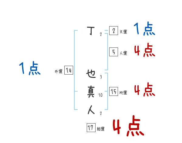 天運![]() | 丁也真人さんの天運は2画の1つ星!優しいですが積極性や意思の強さに欠ける傾向があります。家庭環境の乱れに注意しましょう。 家系が持つ宿命的な運勢を表します。祖先から受け継いだ苗字ですので自分の力が及びません。家柄を象徴します。 |