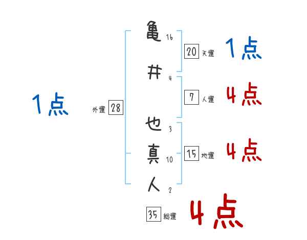 亀井也真人さんの画数の鑑定結果