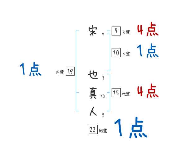 宋也真人さんの画数の鑑定結果