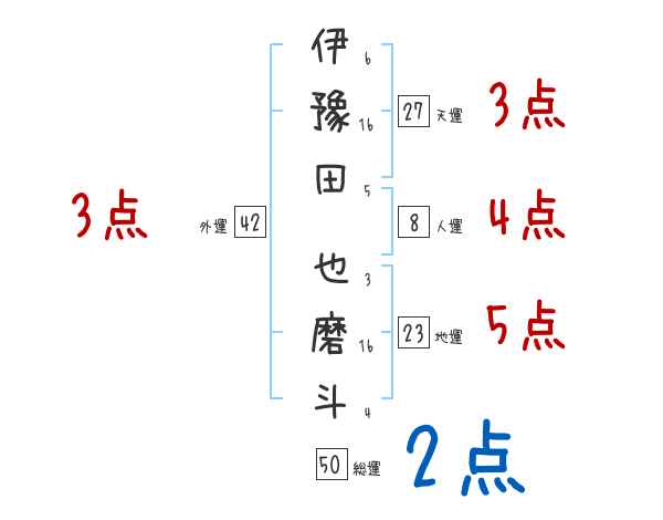 伊豫田也磨斗さんの画数の鑑定結果