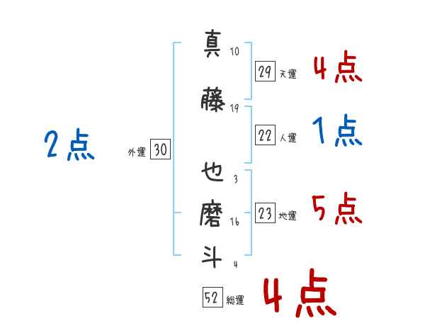 真藤也磨斗さんの画数の鑑定結果