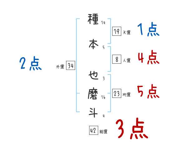 外運![]() | 種本也磨斗さんの外運は34画の2つ星!独創性に優れるが、自尊心が強く災難に注意しましょう。 生活面を象徴する運勢です。外部から受ける影響力を表し、結婚運、家庭運や職場、環境への順応性を表します。 |