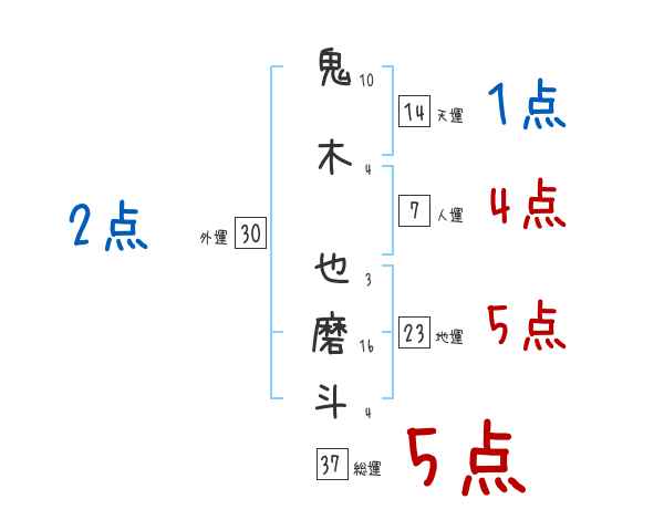 鬼木也磨斗さんの画数の鑑定結果