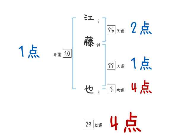江藤也さんの画数の鑑定結果