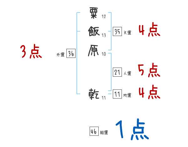 粟飯原乾さんの画数の鑑定結果