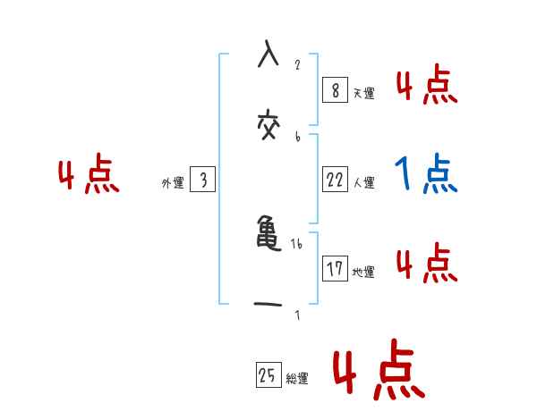 入交亀一さんの総運は25画の4つ星