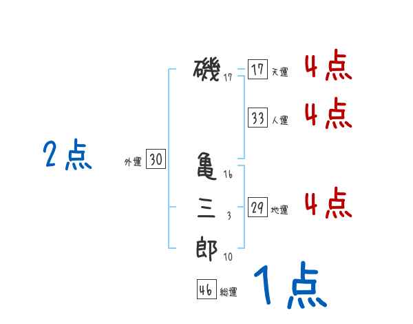 磯亀三郎さんの画数の鑑定結果