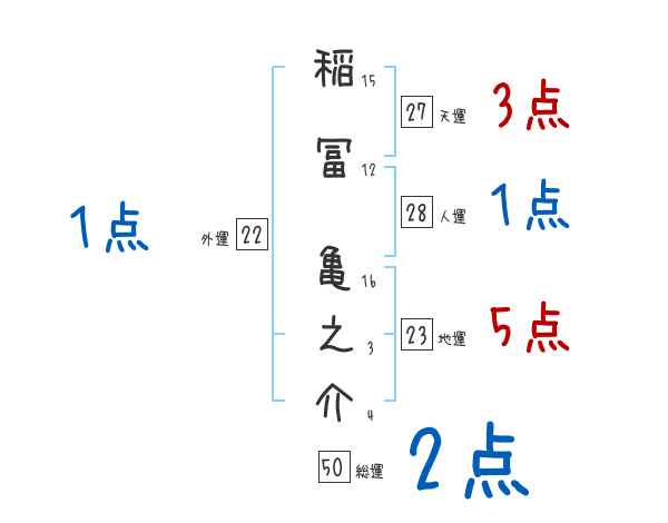 稲冨亀之介さんの画数の鑑定結果