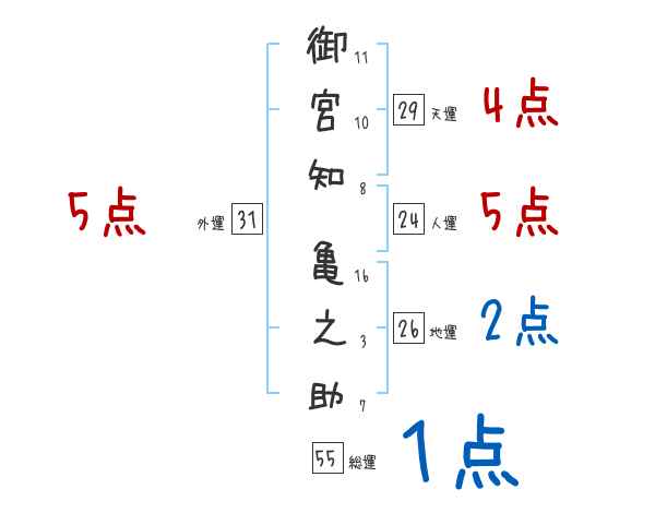 御宮知亀之助さんの画数の鑑定結果