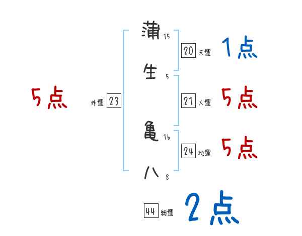 蒲生亀八さんの画数の鑑定結果
