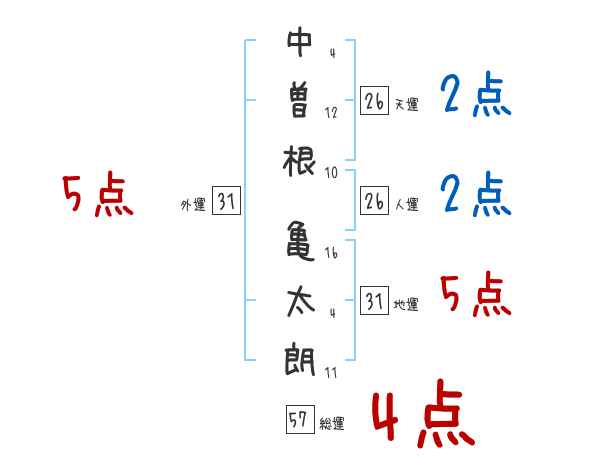 中曽根亀太朗さんの画数の鑑定結果