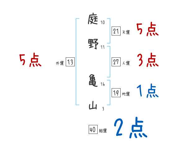 庭野亀山さんの画数の鑑定結果