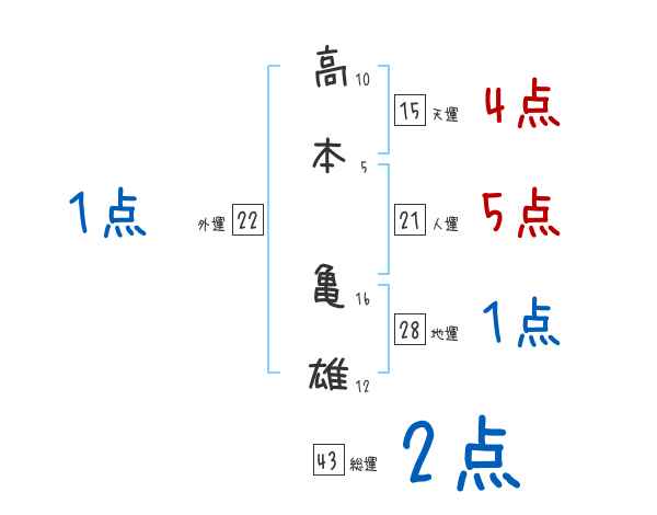 高本亀雄さんの画数の鑑定結果