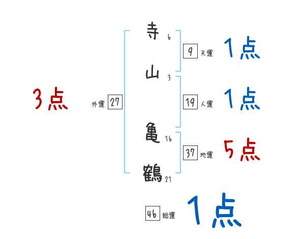寺山亀鶴さんの画数の鑑定結果