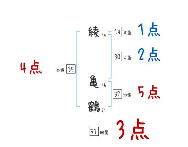 綾亀鶴さんの画数の鑑定結果
