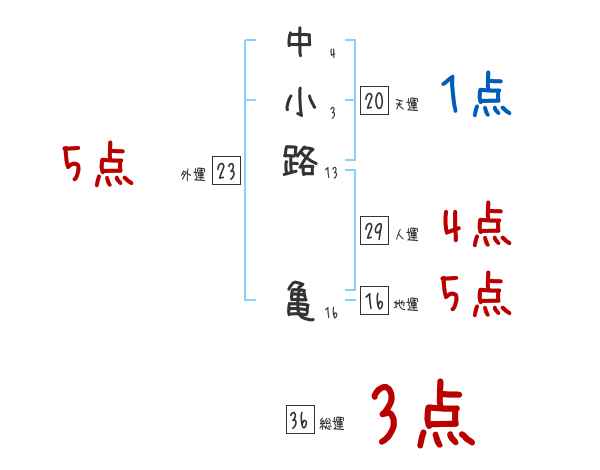 中小路亀さんの画数の鑑定結果