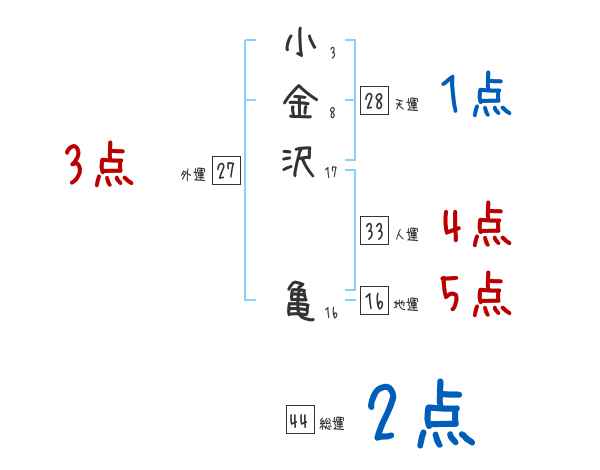 小金沢亀さんの画数の鑑定結果