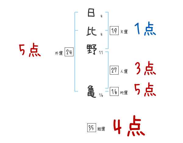 日比野亀さんの画数の鑑定結果