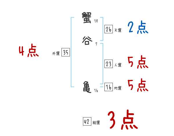蟹谷亀さんの画数の鑑定結果