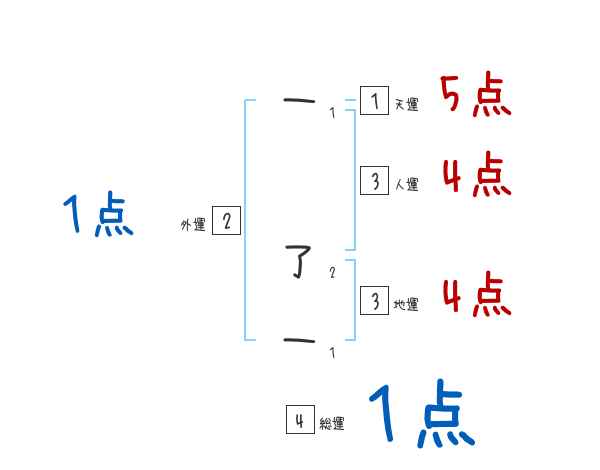 人運![]() | 一了一さんの人運は3画の4つ星!活動的で才能に恵まれ、多くの信頼を得る。希望に満ち成長する。 性格や才能などを表す2番目に重要な運勢です。人間関係や協調性、社会的な成功に影響します。主に20歳から50歳ぐらいまでの中年期の運勢を表します。 |