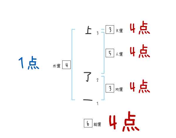 天運![]() | 上了一さんの天運は3画の4つ星!活動的で才能に恵まれ、多くの信頼を得る。希望に満ち成長する。 家系が持つ宿命的な運勢を表します。祖先から受け継いだ苗字ですので自分の力が及びません。家柄を象徴します。 |