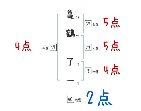 亀鶴了一さんの画数の鑑定結果