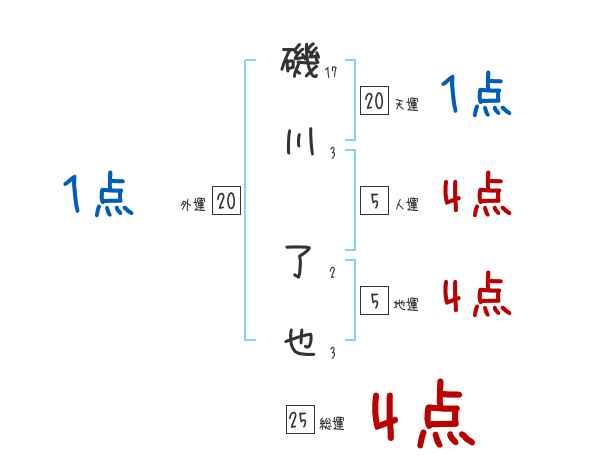 磯川了也さんの画数の鑑定結果