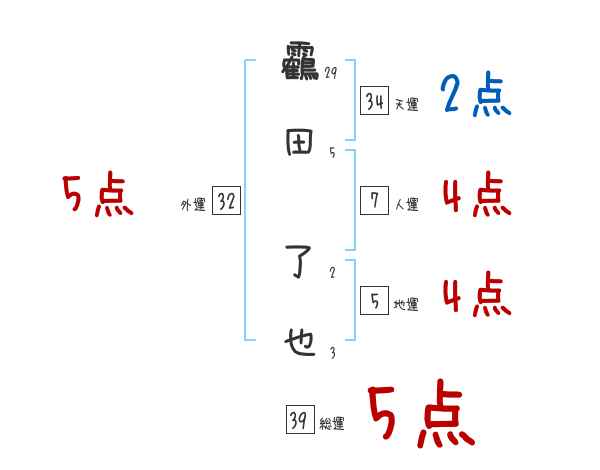 靏田了也さんの画数の鑑定結果