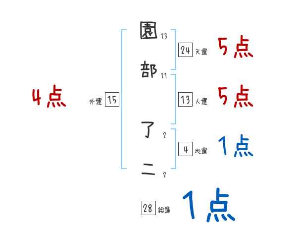 園部了二さんの画数の鑑定結果